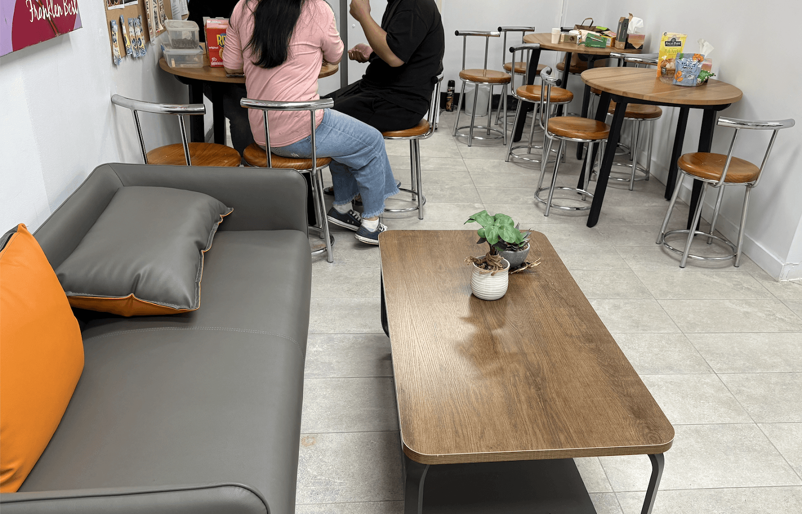 コーヒーメーカーや電子レンジを備えたラウンジ