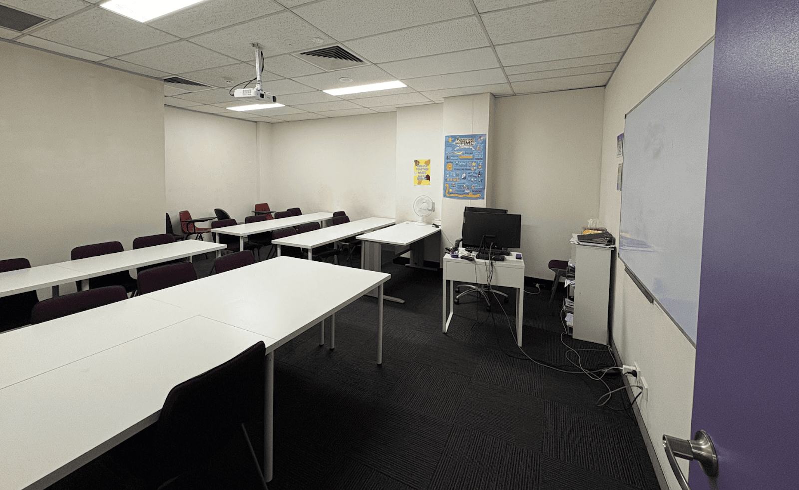 全ての教室に大きなホワイトボードとプロジェクターが完備